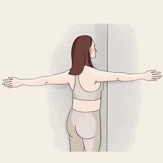 z wewnętrzną częścią poziomo na ścianie. Ważne jest, aby ramię miało bezpośredni kontakt ze ścianą.Krok 2: Odwróć się od ściany i obróć tułów tak bardzo, jak to możliwe bez zdejmowania ramienia ze ściany. Pozostań w tej rozciągniętej pozycji przez około 30 sekund.