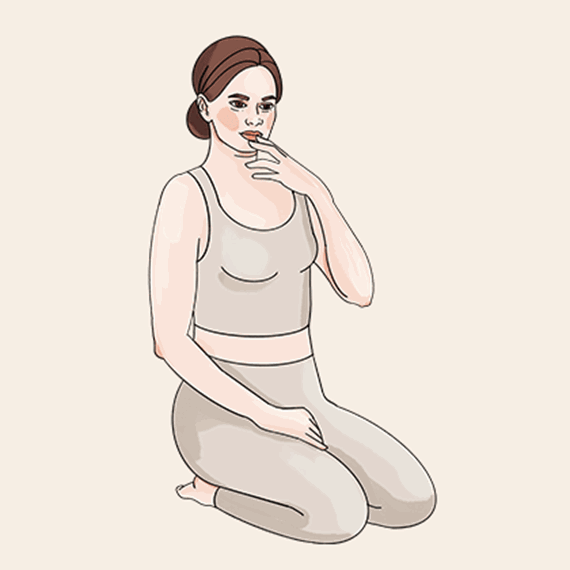 Krok 1: Usiądź prosto na piętach lub na krześle. Trzymaj głowę prosto i odciągnij podbródek. Wyprostuj głowę tak daleko, jak to możliwe i umieść ją za szyją. Zalecamy delikatnie odchylić głowę do tyłu jedną ręką. Upewnij się, że nie wchodzisz do pozycji wklęsłych pleców, a jedynie poruszasz głową.