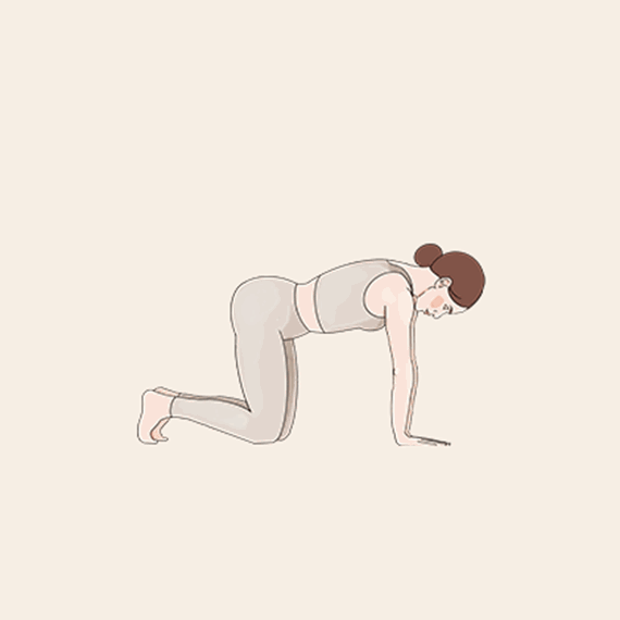 Krok3: Zrób wdech i zacznij unosić klatkę piersiową, prostując przy tym ręce. Zwróć kość ogonową w stronę podłogi i wygnij kręgosłup, odchylając głowę powoli do tyłu, aż poczujesz rozciąganie mięśni.