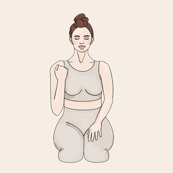 Krok 1: Usiądź na swoich piętach i połącz stopy. Rozsuń kolana na szerokość swoich bioder.