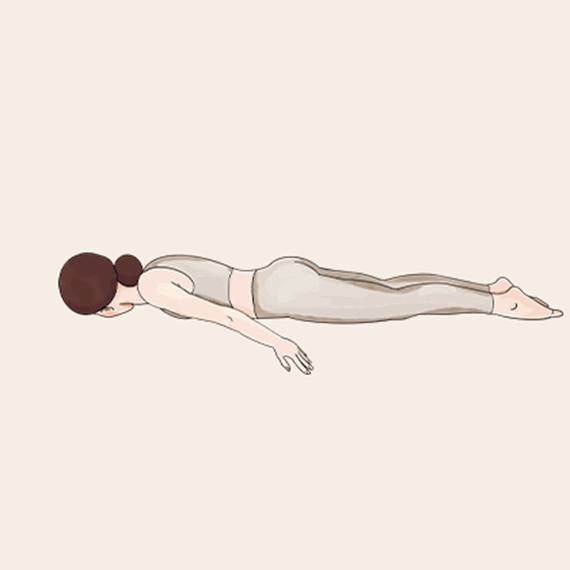 Krok 1:Połóż się płasko na brzuchu, wyciągnij nogi do tyłu i przyciśnij stopy do podłogi.